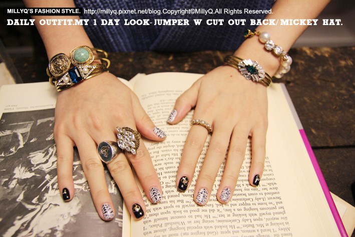 這個月在AnnLaLa那邊做的斑馬紋光療指甲也成為飾品的一部份了♥